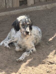 Edgar is a shy 6 year young Setter who has lived outside with his mom Almondine his entire life. He is looking for a patient person with lots of love to give. He needs a home without cats and a 6′ fenced yard. Edgar is in a foster home in Edmond, OK.