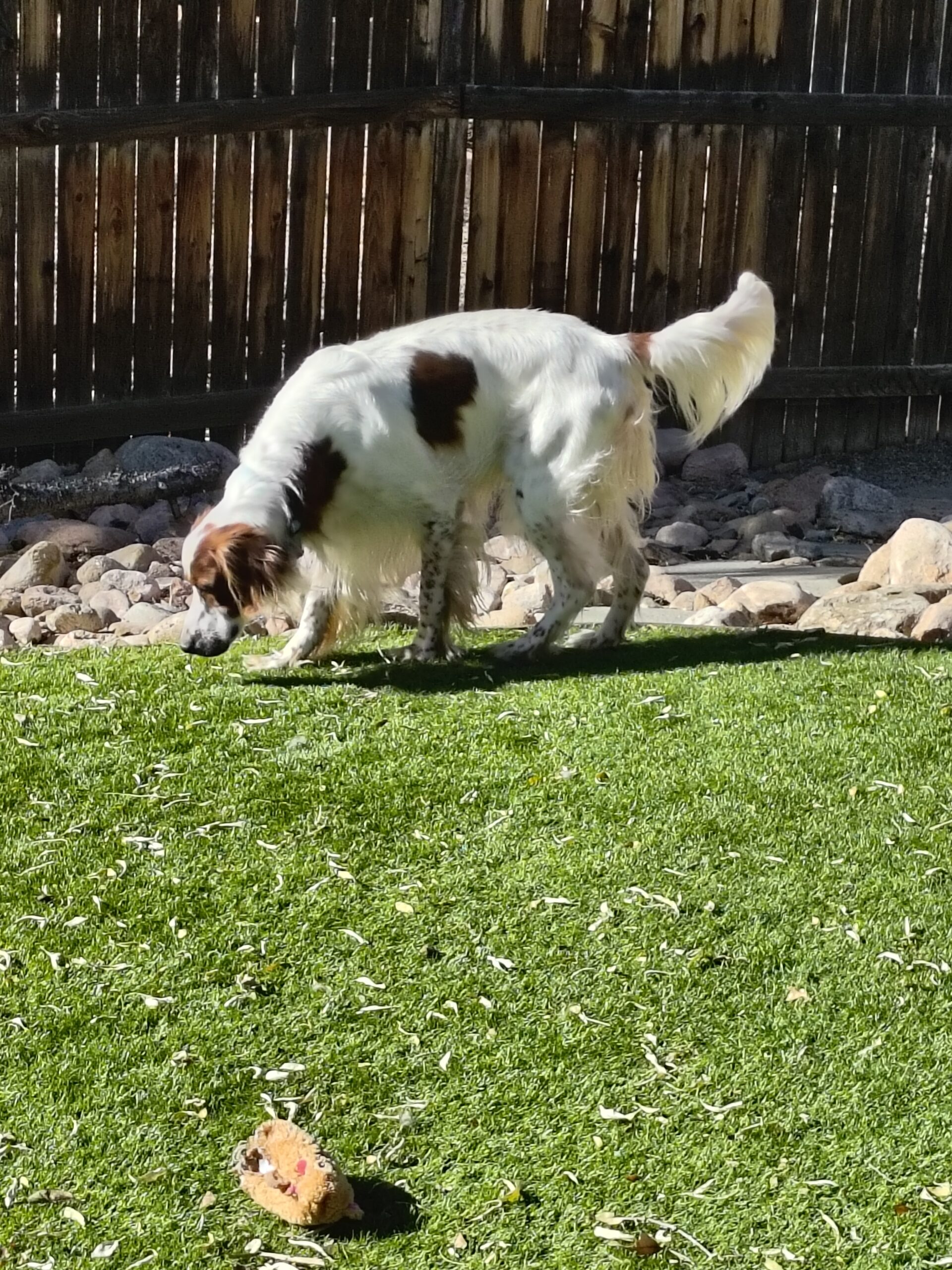 Denali has a strong interest in squirrels and will stand on his hind legs to watch them in the trees, barking enthusiastically at his unreachable “friends.” In the yard, he usually comes when called. He loves soft toys and also enjoys chewing on sturdier bones. Denali shows no food aggression and is comfortable sharing space and toys with other dogs.
