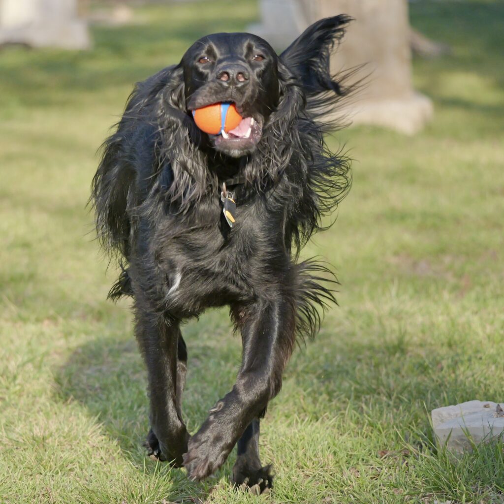Dolly went to experienced SWESR foster parents. Initially, she was frantic and had separation anxiety. She was a counter cruiser, always getting into things, and always, always wanting to play with her elderly English Setter foster siblings. When her foster parents went away for one weekend, Dolly stayed at another foster home, where she played non-stop with their Irish Setters. She had an extraordinarily high energy level.