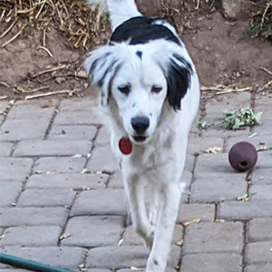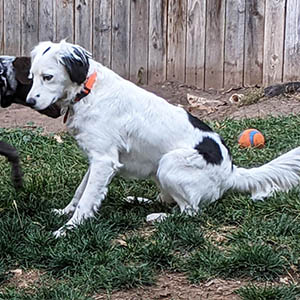 Garbo needs all the things that an active young dog needs – lots of people time and training, plenty of exercise and stimulation, and an active resident dog in her adoptive home. Garbo will not be happy as an only dog. She also needs a securely fenced yard with a 6’ fence to keep her safe. Garbo is not a candidate for a home with children.