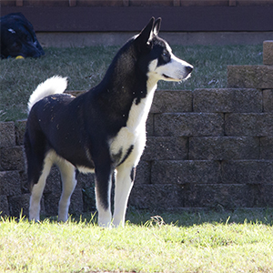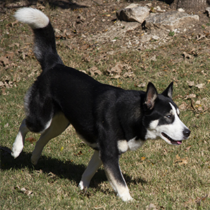Just like his namesake, Johnny Rose, SWESR’s Johnny believes that “People Love Pizzazz.” He loves to play rowdy and is mischievous. Snow and water make Johnny’s “pizzazz” really come out. Playing in them, he is absolutely joyful. Another of Johnny’s joys is a boisterous romp with his bonded buddy Moira. After a fun-filled frolic with her, he is happy to lounge in the house and chew on a nylabone. He is affectionate with humans and loves a good massage.