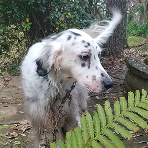 What Rocky most needs is a stable environment and consistent loving attention to help him realize that he’s OK and that he belongs! He will always have some anxiety but after what he has been through, coupled with the sensitive nature of an English Setter, that is understandable. He is most comfortable with women and has a bit of a watch dog and retreat mentality, which means he will always bark when there is a car in the driveway or someone at the door. He often barks when his foster Dad enters the room where he is with his foster Mom, so any men in the home would have to be gentle and patient. No kids because of this anxiety and his desire for a calm home.