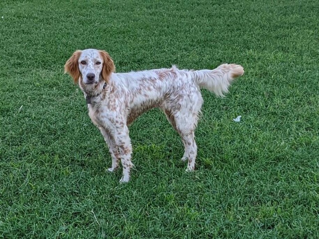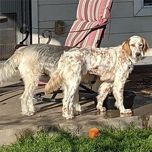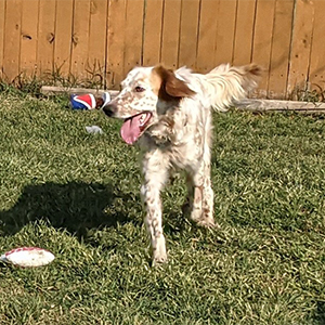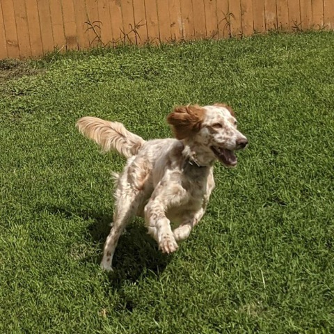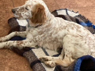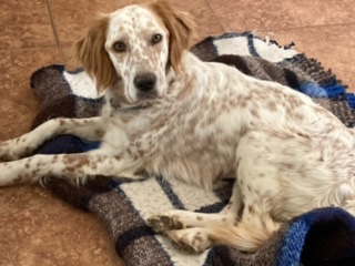 Suri is a petite, 3 year old English Setter who has lived most of her life outdoors in a dog run. She is enjoying the comforts of life in a home with her foster family now, and is already potty-trained, crate-trained and doggy-door trained. Suri is very active during the day and is very affectionate and loves to snuggle with her foster mom at night.